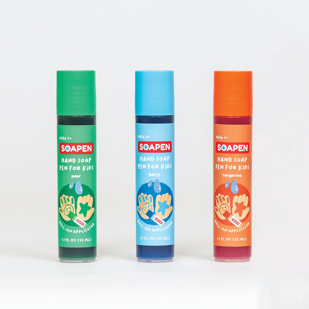 Get your kids to wash their hands with our colorful (and stain-free) soap filled pen that they can draw with. Free of SLS, parabens, phthalates, EDTA, or animal by products. 1.1 fl oz / 33 mL per pen.